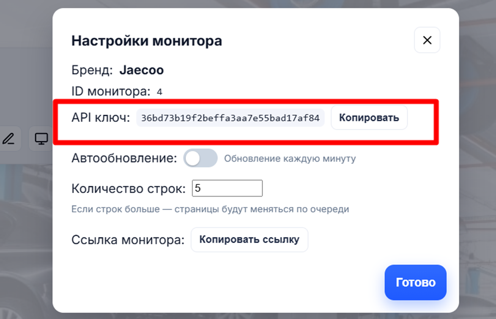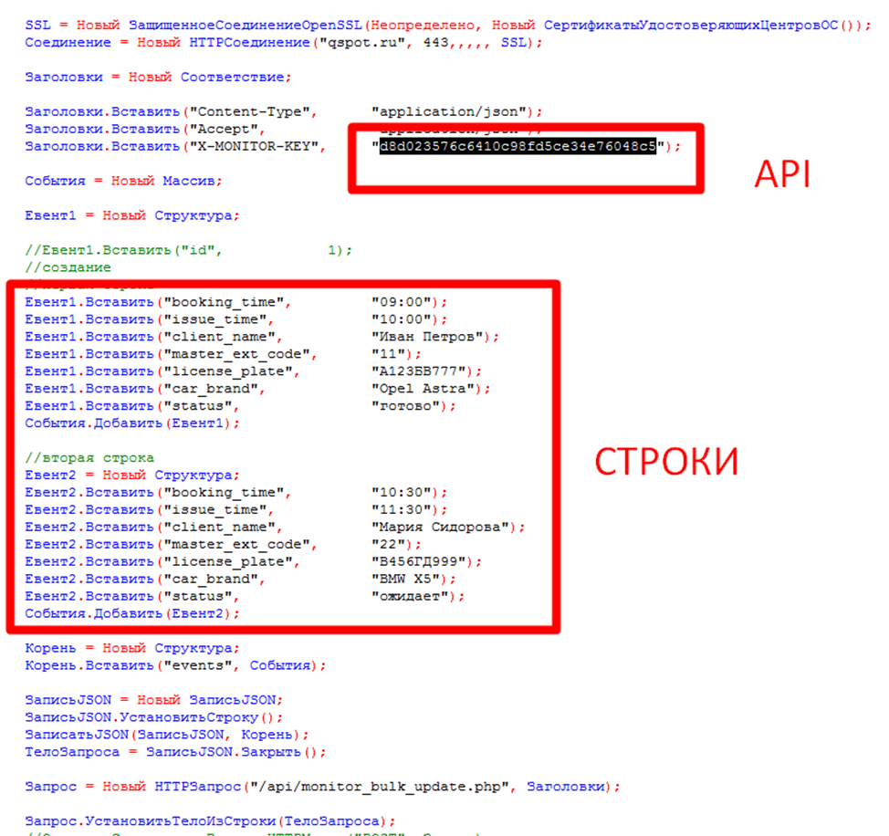 Полученный API-ключ используется для отправки информации из 1С с помощью метода monitor_bulk_update.