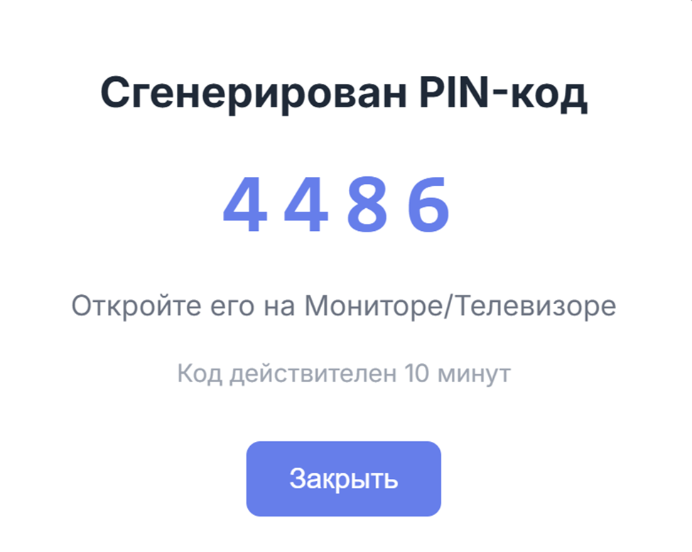 Получаем PIN-код в личном кабинете (на ноутбуке или телефоне). Затем открываем сайт QSpot на телевизоре.