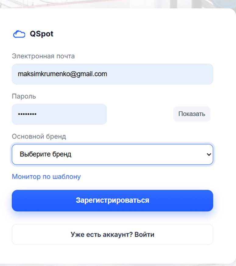 Указываем электронную почту, пароль и выбираем основной бренд. Список брендов постоянно расширяется — сейчас доступно два бренда.