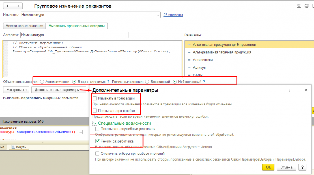 • Возможно удаление без проверок ссылочной целостности. Ответственность за такое удаление полностью на сотруднике, который добавляет записи в регистр. Перед удалением без контроля ссылочной целостности, настоятельно рекомендуется делать архивы баз и проверять сначала на копии.
