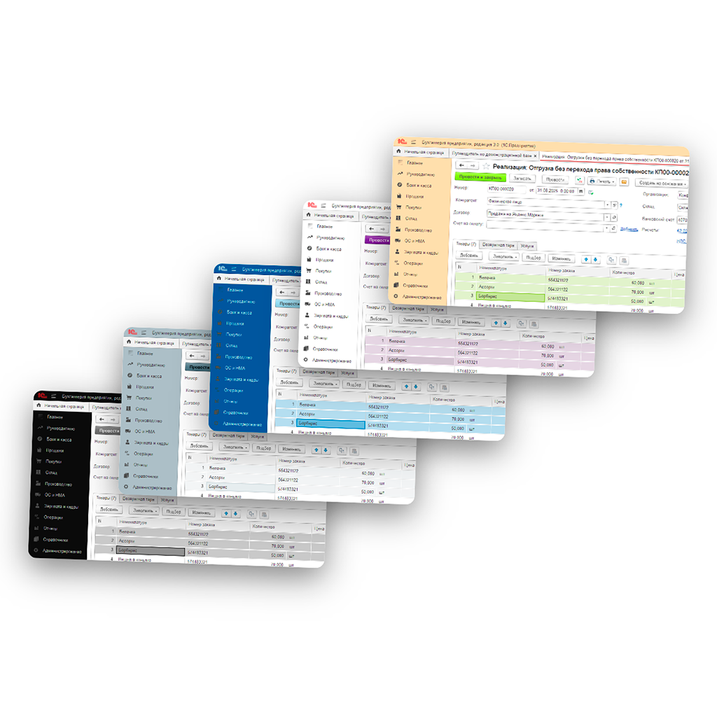 NightDayThemes предоставляет широкий выбор цветовых схем для персонализации интерфейса 1С:Предприятие. Набор из 30 тем позволяет каждому пользователю выбрать подходящий вариант в зависимости от условий работы и личных предпочтений.