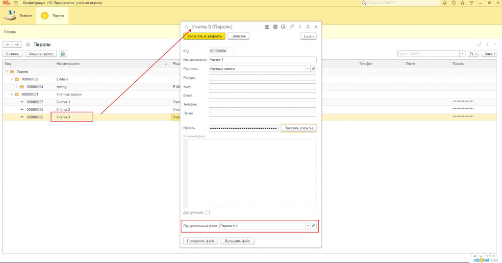 2. Доступна новая функция для хранения текстовых или других данных в базе 1С, например если нет времени на систематизацию своих паролей, то можно прикрепить их к базе в виде файлов (текстовых и других...).