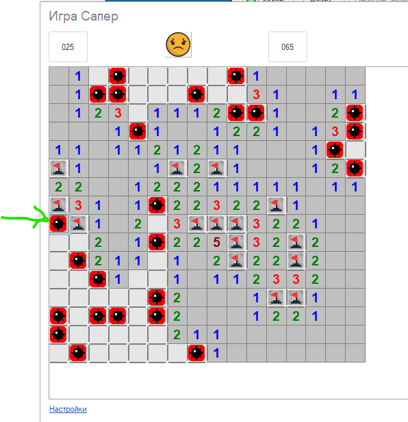НО: в оригинальном сапёре первый ход НИКОГДА не попадает на мину.