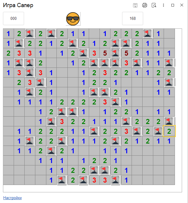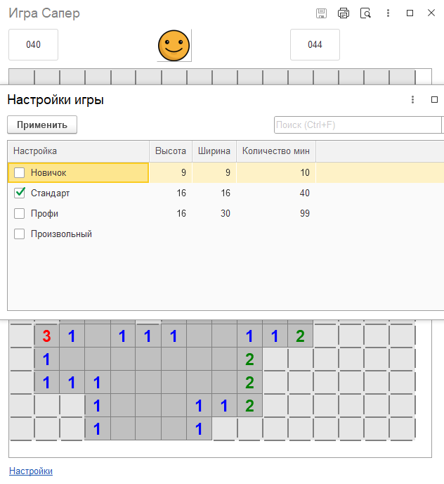 Игра "Сапёр" на 1С. Три уровня.