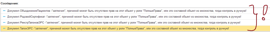 Для сбора данных - использую только справочники и документы, потому что 80% захламления базы находится в них. Кроме того, справочники и документы имеют ссылочный тип, а это очень полезно для нетиповых сильно переписанных конфигураций, так как могут присутствовать странные "ничейные" объекты, которые были забыты/оставлены при ручном обновлении базы (см.скрин). При обнаружении подобных "ничейных" объектов - внизу будет выдано сообщение: добавьте им роль ПолныеПрава в конфигураторе.