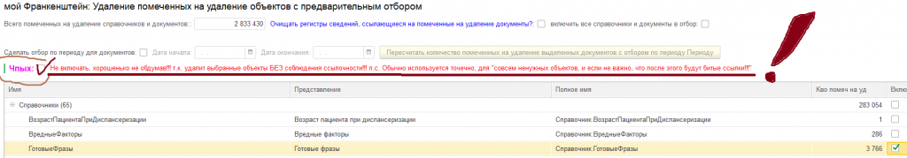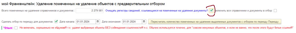 !!!Если включен данный режим, то произойдет удаление выбранных объектов БЕЗ ссылочного контроля!