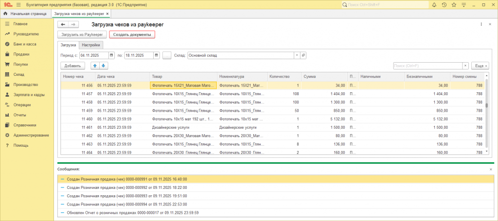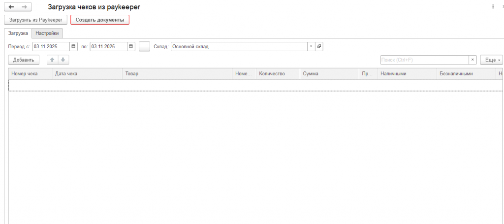 Загрузка из paykeeper через API с созданием чеков и отчетов о розничных продажах