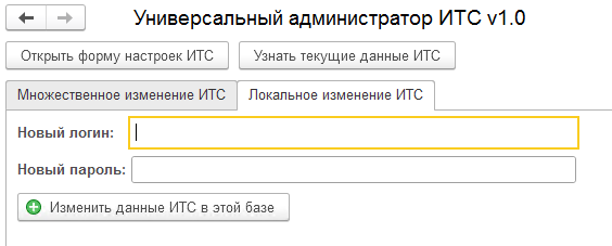 Также пару слов о вкладке "Локальное изменение ИТС". Здесь всё просто - вводим корректный логин и пароль от кабинета ИТС и нажимаем на кнопку "Изменить данные ИТС в этой базе", радуемся жизни!
