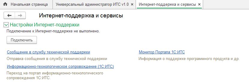 В самом верху формы мы видим две кнопки - "Открыть форму настроек ИТС" и "Узнать текущие данные ИТС".