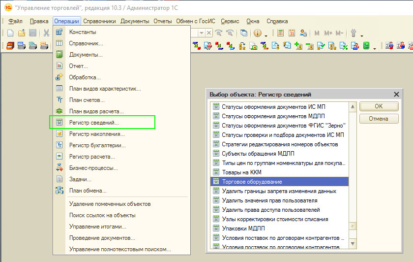 1С 8 обработка редактирование списка регистр сведений торговое оборудование