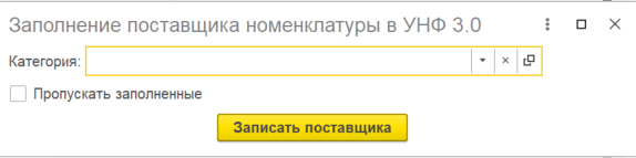 Заполнение поставщика номенклатуры в УНФ 3.0 (обработка)
