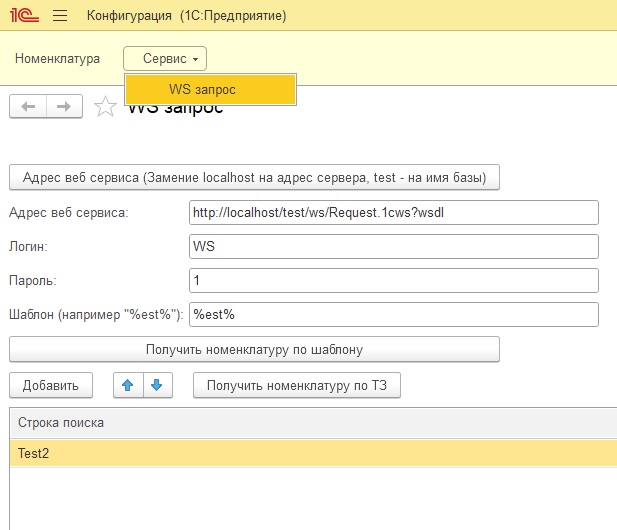 Заходим в базу. В базе есть обработка "WS_Запрос" ее сохраняем как внешнюю обработку. Заходим в любую другую базу и запускаем.
