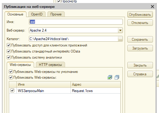 В адресе указываем путь до опубликованной базы. Пользователя я создал специально "WS" Пароль "1"