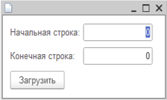Далее открыть обработку, указать "Начальную строку" для загрузки и "Конечную строку" для загрузки.
