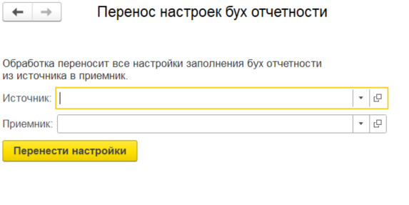 Обработка копирует структуру строк бухгалтерской отчетности и связанные алгоритмы сбора данных из объекта-источника в объект-приемник.
