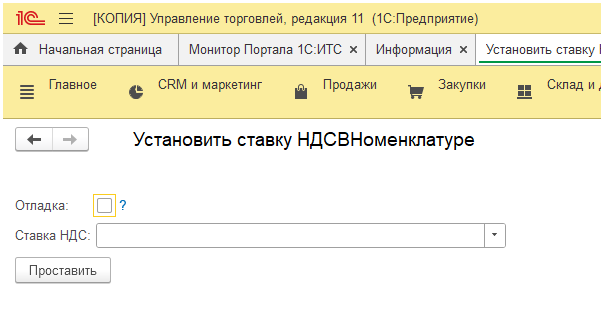 Установка ставки НДС в справочнике Номенклатура для УТ 10 и УТ 11