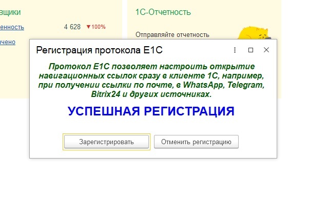 Для доступа к реестру используется COMОбъект StdRegProv, о чем платформа вежливо Вас предупредит при регистрации. Конечно же, для успешной регистрации протокола необходимо запустить платформу от имени администратора. При необходимости можно отменить регистрацию.