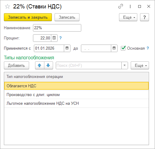 Если вы вручную пополняли перечисление «СтавкиНДС», не забудьте связать новые элементы перечисления со одноименным справочником «СтавкиНДС» через реквизит «ПеречислениеСтавкаНДС». Чтобы не делать это вручную, используйте прилагаемую обработку "УстановкаПеречисленияВСтавкуНДС".