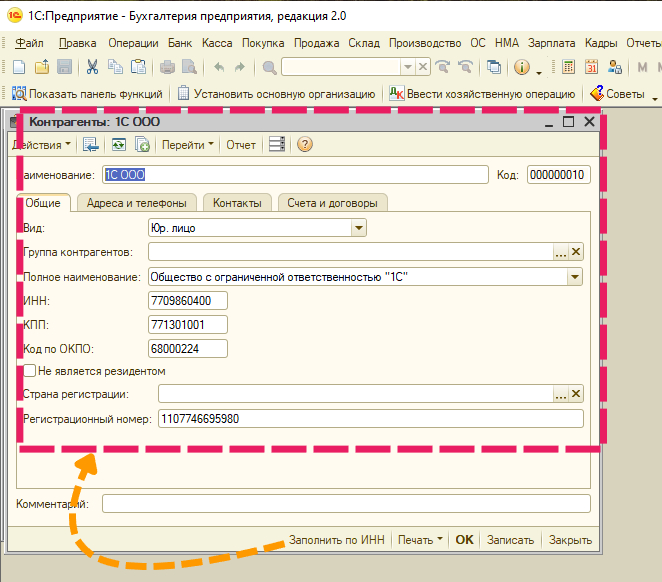 -> Заполнение контрагентов по ИНН как в новых, так и в старых конфигурациях 1С