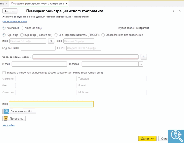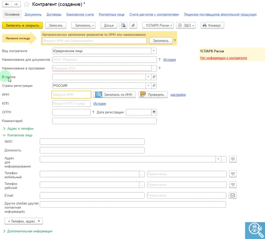 Заполнение контрагентов по ИНН данными ФНС (как в новых, так и в старых конфигурациях 1С)