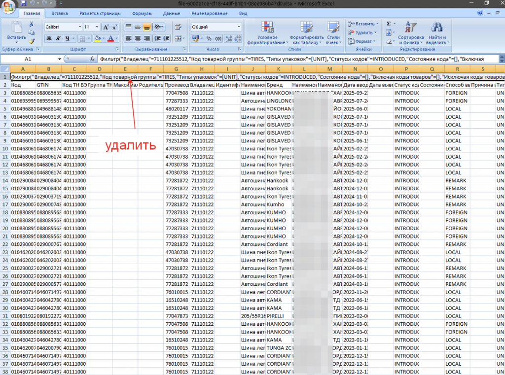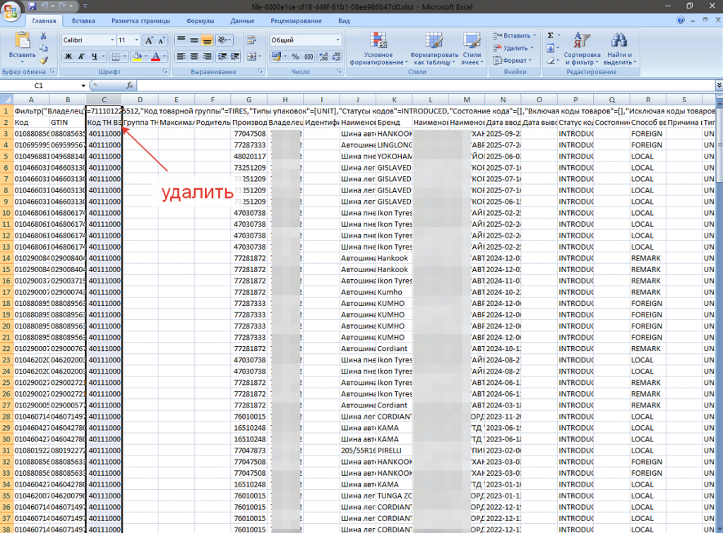 1. Выгружаем из ЧЗ марки по определённой товарной группе. В полученном файлике удаляем первую строку и столбец Код ТНВЭД.