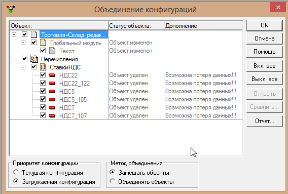ЕСЛИ РЕЛИЗ ВАШЕЙ БАЗЫ СООТВЕТСТВУЕТ МОЕМУ 7.70.1008 И НЕТ ИЗМЕНЕНИЙ ТО МОЖНО СМЕЛО ОБЪЕДИНЯТЬ В ПРОТИВНОМ СЛУЧАЕ НУЖНО ПЕРЕНОСИТЬ РУКАМИ.