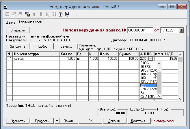 Доработка для выбора в документах новой ставки НДС 5%, 7% и 22%.