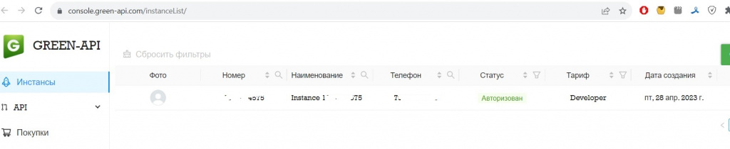 Открывается обработка отправки писем. Переходим на закладку WhatsApp/МАХ. Жмем на ссылку подключения. На сайте green-api.com создаем инстанс. Можно сначала для разработчика, он бесплатный с небольшими ограничениями. Получаем ID и API. Вставляем эти реквизиты в обработку, они сохраняются для данного пользователя. При следующем запуске обработки отправки, эти реквизиты будут заполнены. Если в базе работают несколько пользователей, то для других придется один раз ввести те же ID и API.