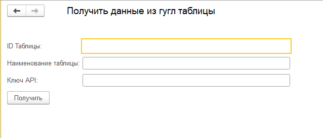Цель: Обработка предназначена для чтения данных из Google Таблиц (Google Sheets) прямо в 1С, используя официальный Google Sheets API. Что принимает (Входные параметры): IDТаблицы — это уникальный идентификатор документа Google Таблицы (его можно найти в URL таблицы между /d/ и /edit). Наименование Таблицы — это имя конкретного листа (вкладки) внутри документа, а также диапазон ячеек. Например, Лист1!A1:D100 или просто Лист1 (тогда возьмутся все заполненные ячейки). КлючAPI — API-ключ, полученный в Google Cloud Console, необходимый для авторизации запросов к API.