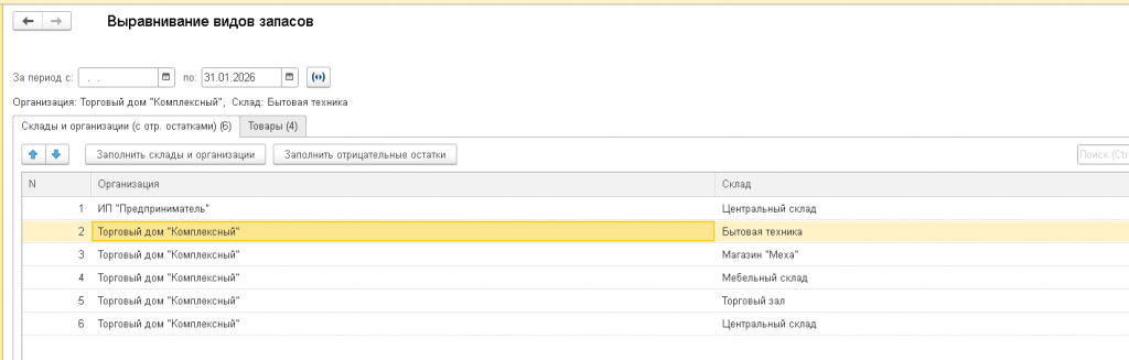 Поддерживает доформирование строк: при отсутствии строки с нужным видом запасов и аналитикой создаёт её автоматически, заполняя свойства через
