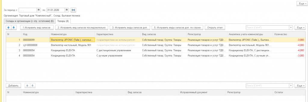Внедренцам и администраторам 1С, которым нужно пакетно исправить последствия некорректной доработки, ошибочной загрузки данных или неверных настроек видов запасов.
