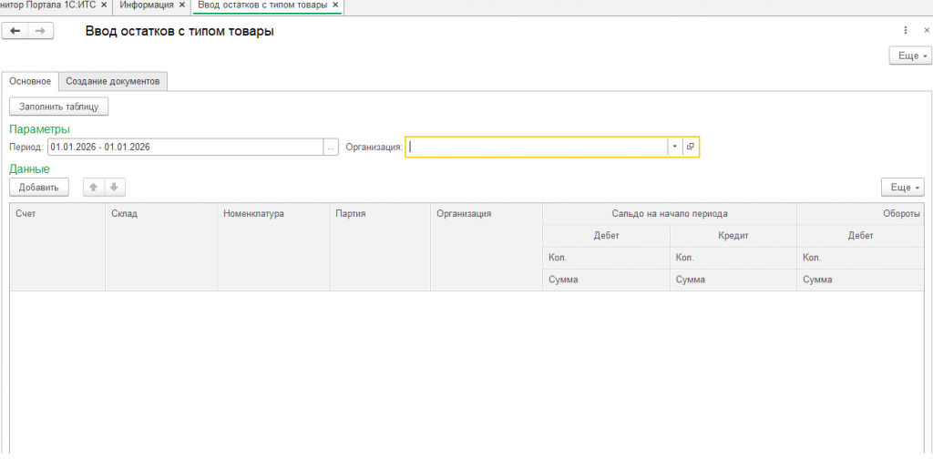 Закрытие остатков по партиям на 41 счете с помощью создания документов "Ввод остатков"