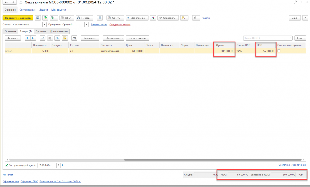 Если в документе Цена вкл. НДС = Истина, то дополнительно пересчитывается цена по формуле Цена/1.2*.1.22, после чего пересчитывается сумма, сумма НДС и сумма с НДС