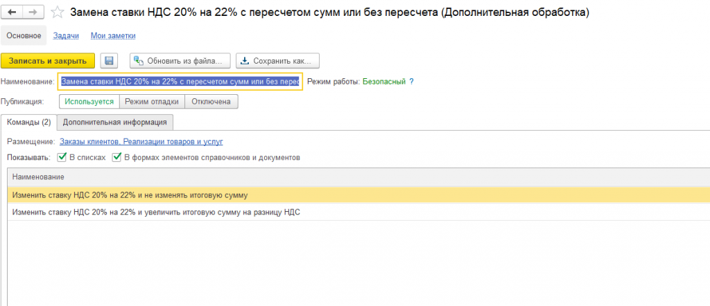 Если в строке ставка НДС = 20%, то происходит ее замена на 22% и пересчет суммы НДС.