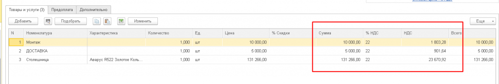 Ручное изменение ставки НДС в каждой строке табличной части при необходимости унифицировать НДС по всему документу (особенно для отгрузок 2026г по заказам 2025г).