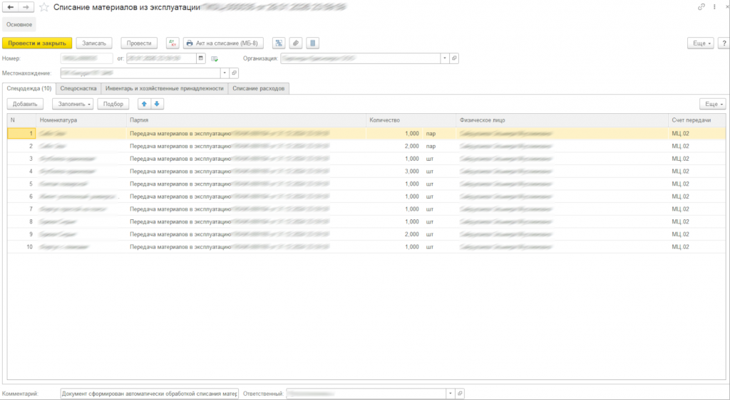 - Компании, которым необходимо автоматически создавать документы списаний материалов спецодежды с истекшим сроком годности.