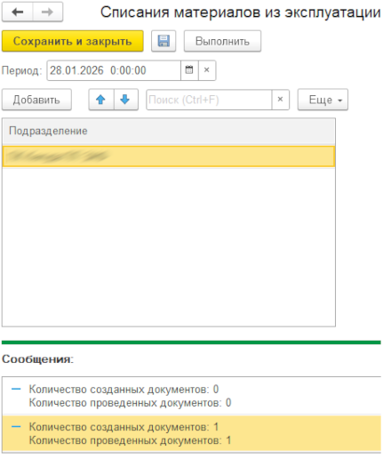 - Возможность выбирать определенные подразделения для списаний и формировать по всем сразу;