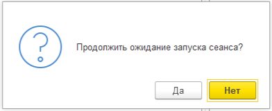После нажатия на кнопку появится вопрос "Продолжить ожидание запуска сеанса?". Ожидание необходимо для того, чтобы тонкий клиент успел запуститься с подменным паролем.