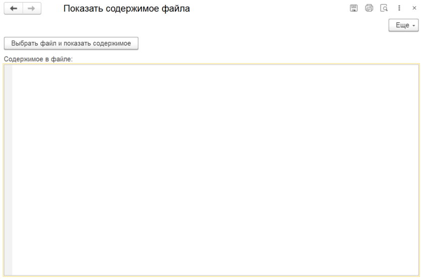 Ниже приведён пример для демонстрации: пользователь выбирает файл, затем содержимое текста файла читается и помещается в реквизит формы "СодержимоеВФайле".