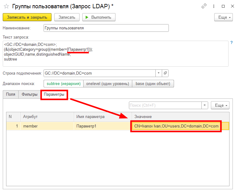 ПараметрыВыполнения = дпLDAP.ВыполнитьЗапросLDAP(ЗапросLDAP, ПараметрыЗапроса);