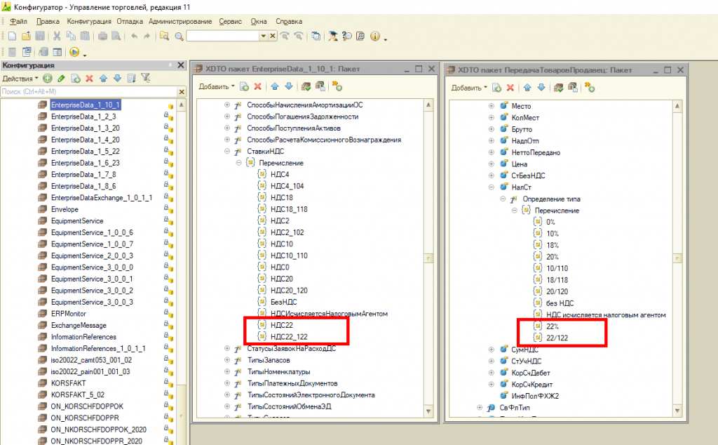 В 1С с недавнего времени появилась ставка НДС 22%.