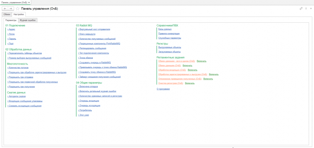 Расширение позволяет настроить обмены между конфигурациями 1С через брокеры сообщений.