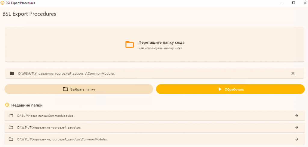 После обработки будет сформирован список всех экспортных процедур и функций общих модулей. Сохраните его в формате JSON.