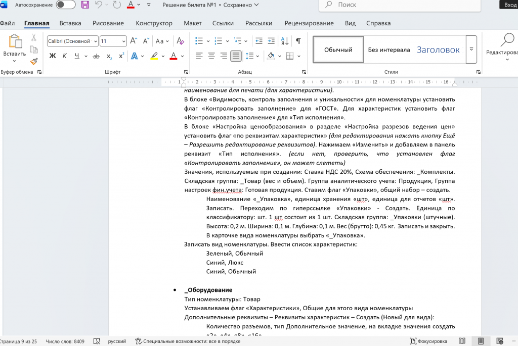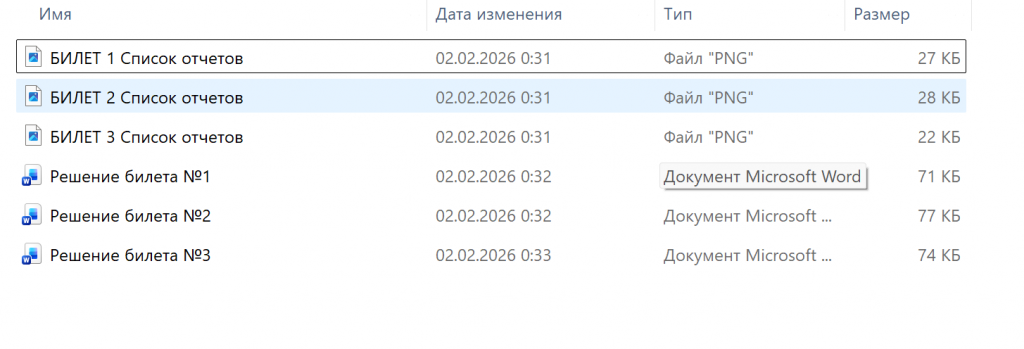 Описание решение билетов максимально подробно описано в вордовских файлах со справочниками, видами цен, контрагентами и другими данными. Так же помимо самих решений прикрепил 3 скриншота со списками используемых отчетов для решения экзамена.