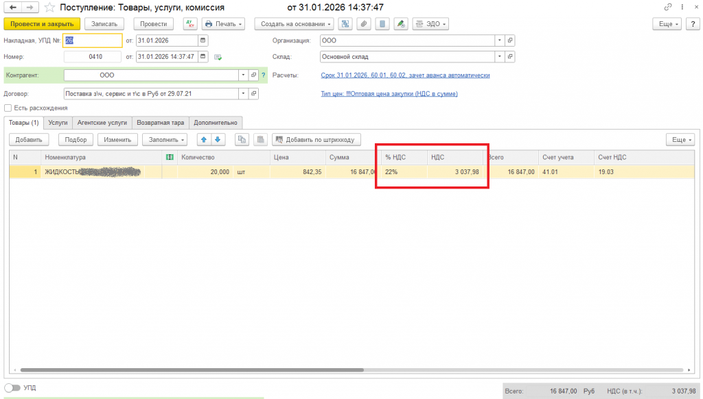 Загрузка данных из Альфа-Авто 5.1 в БП 3.0 с новой ставкой НДС 22%, 5%, 7%