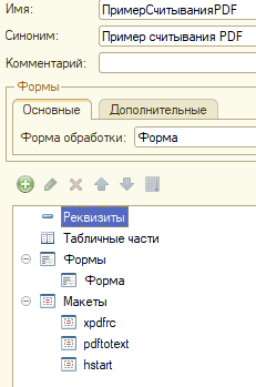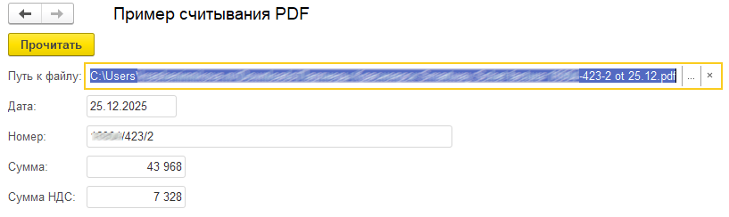 Для примера из выбранного файла считываются дата, номер, сумма и сумма НДС.