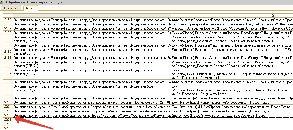 Предыстория. Нужно было проверить все вызовы функции обПраво() и доработать ее только для определенных сценариев. К примеру, можно было не изменять вызов функции, когда указан конкретный параметр права, например, "ПравоРедактироватьДокумент": обПраво("ПравоРедактироватьДокумент"). В остальных случаях надо изменить вызов функции - добавить еще один параметр.