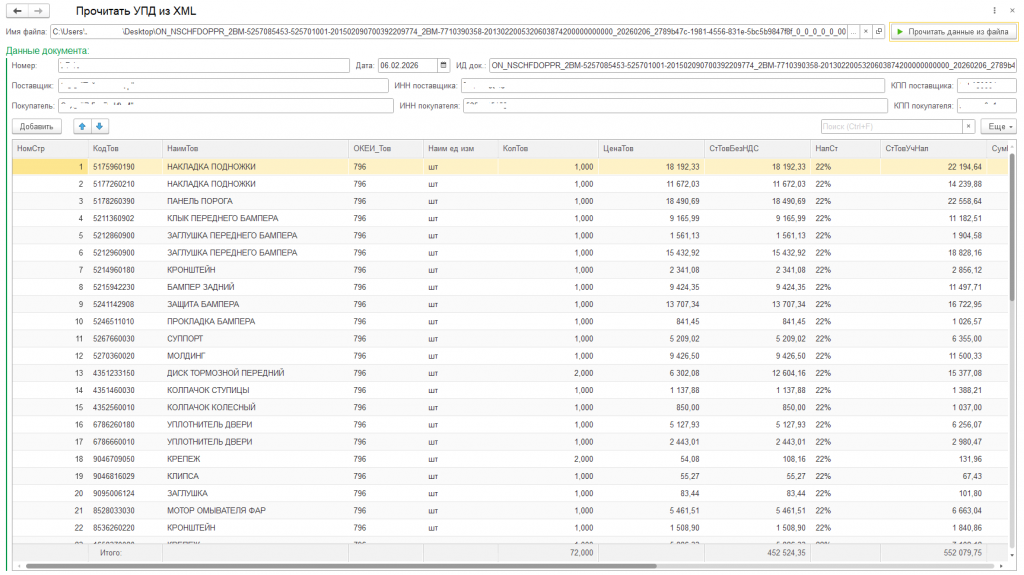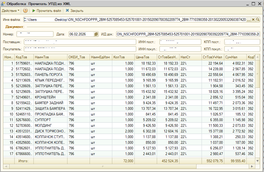 Чтение УПД из XML (функция, читающая XML данные в структуру)