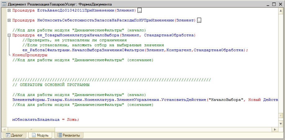 //Код для работы модуля "ДинамическиеФильтры" (начало)