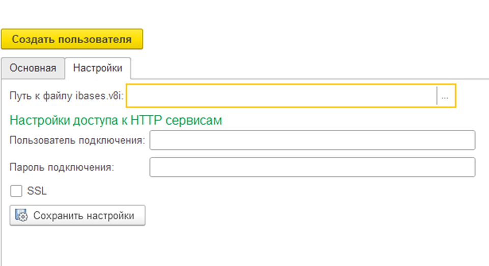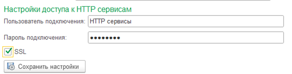 В полях Пользователь подключения и пароль подключения указываем ранее созданного пользователя с доступом к HTTP сервису.